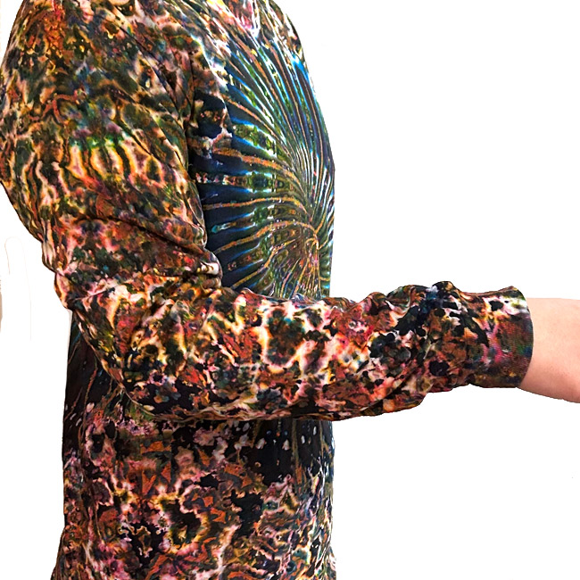 ありふれたタイダイとはまったく異なる奥深くサイケデリックなタイダイ作品の数々は、まさにアートと呼べる一品。タイダイは全てデザイナーの手染め一点物で、同じ物は2つとありません。